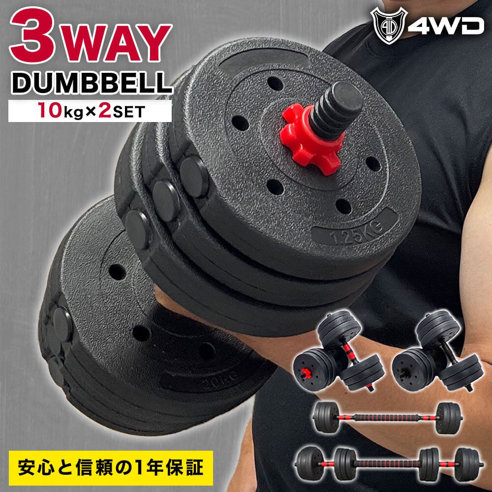 4WD 可変式ダンベル 10kg×2個セット 合計20kg レッド ブラック