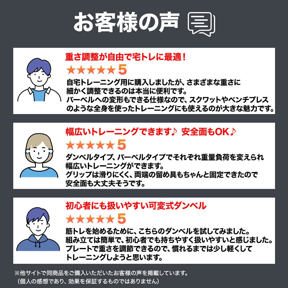 運動不足を解消したい方や、本格的なトレーニングをしたい方など幅広い層にご満足いただけるダンベルです。